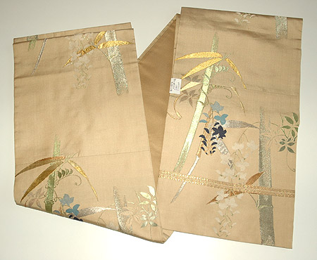 藤の女性らしい美しさの中に、若竹のすっきりとした線が、気品を感じさせ思わず見惚れてしまう素敵な帯です。