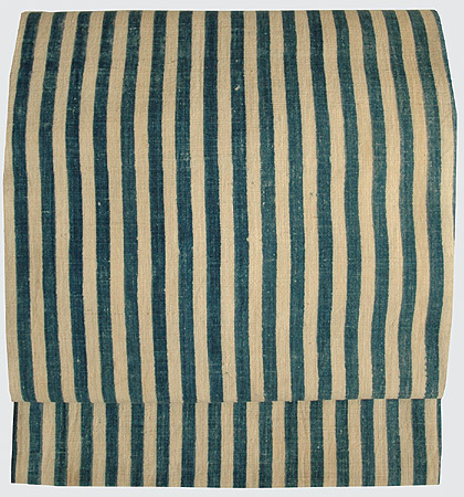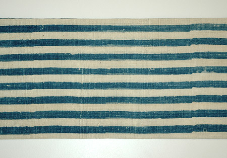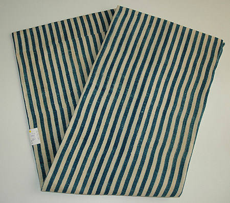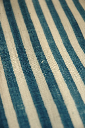 手紡ぎの木綿糸で織り上げた布に、藍染で縞が施されています。