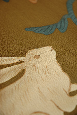 地の茶色に白い兎がよく映え、唐花の存在がやさしい雰囲気を醸し出しています。