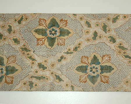 もともと外国から伝わった布を、国内で染めたもののようで独特の雰囲気を持っています。
