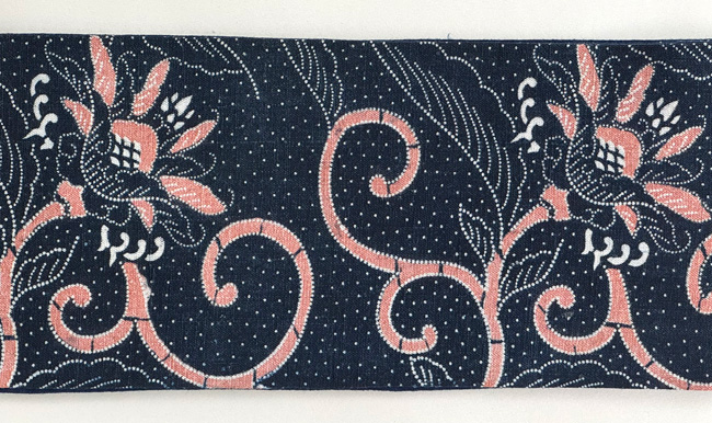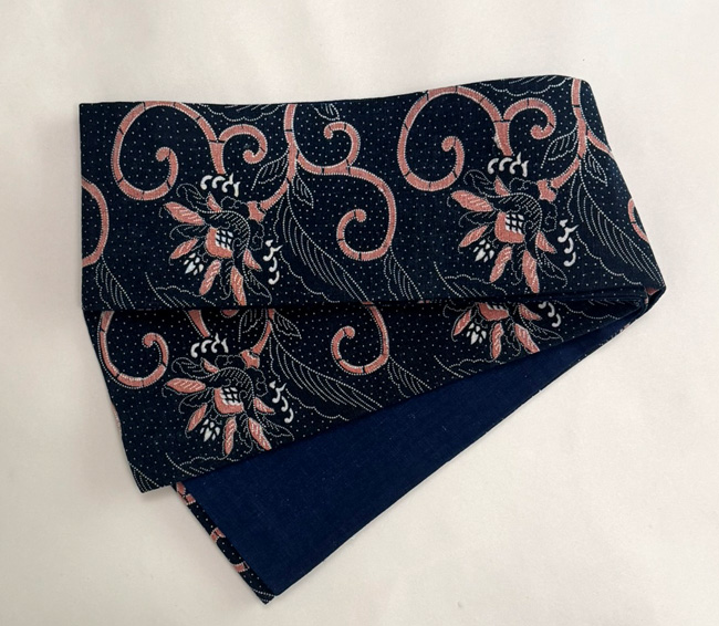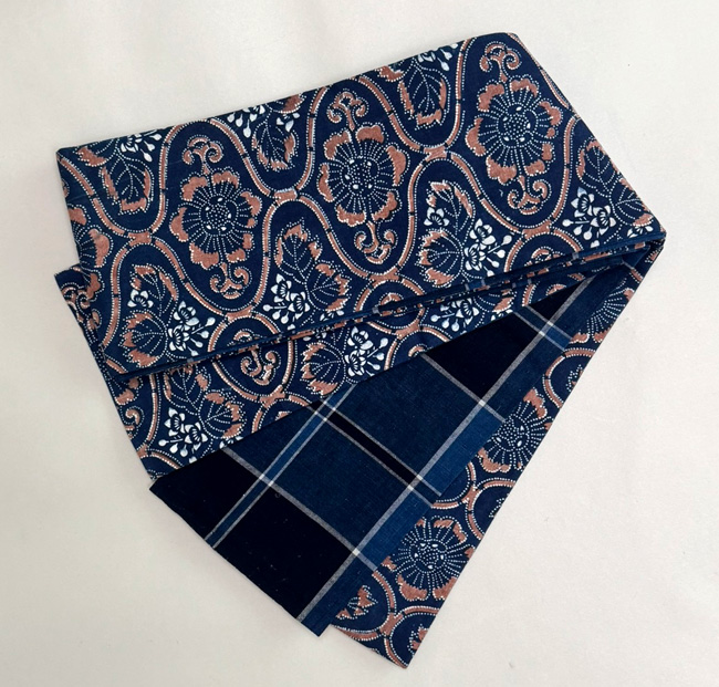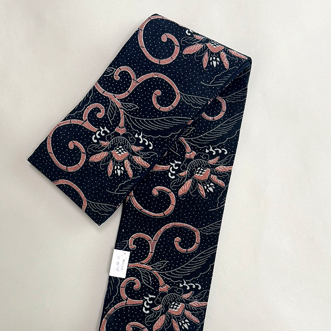 ベンガラの赤い色が入って、小さなドットが重なり、かわいい帯となっています。