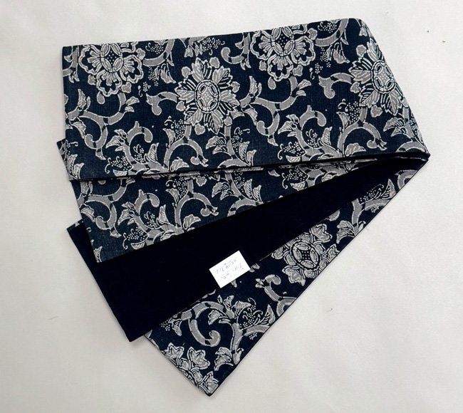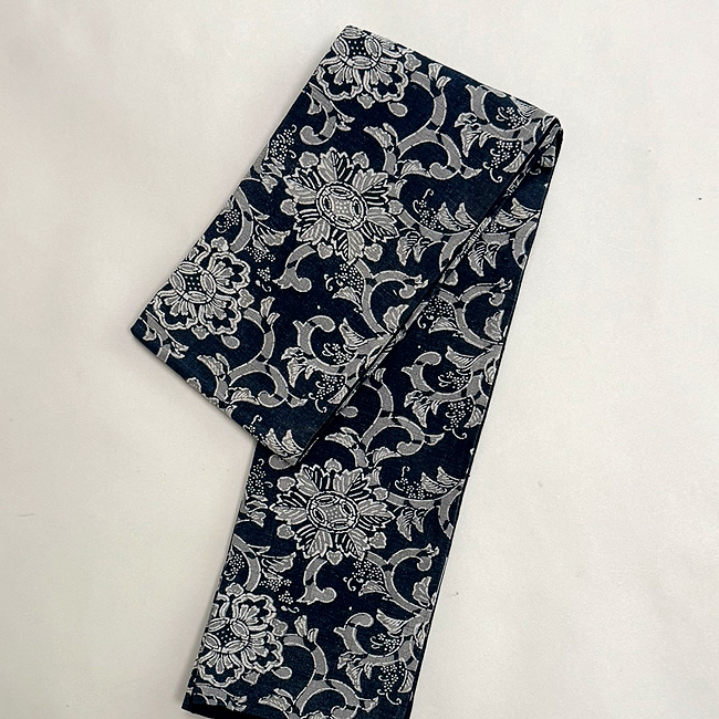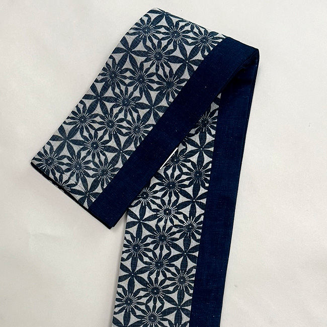 シャープにデフォルメされた菊の柄に、ボーダーがキリッと決まった半幅帯です。