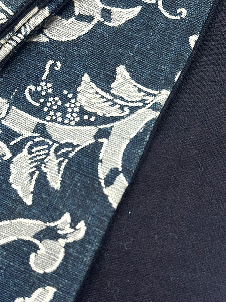 深い藍の中に、硝煙染のグレーが深く落ち着いた色合いを見せています。