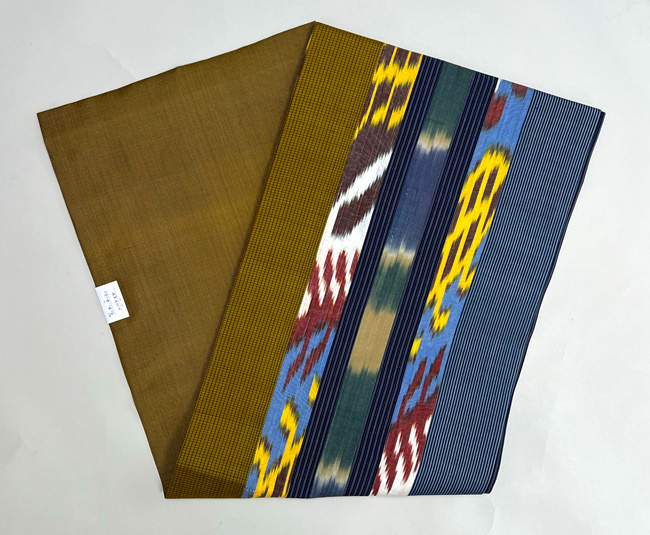 アドラスと大島、黄八丈継ぎ名古屋帯