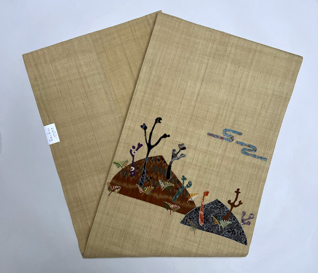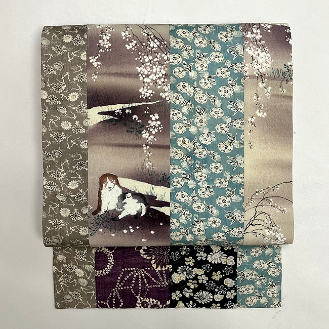 この着物を着た時代の艶やかな姿は想像にお任せして、今は経年変化を潜った侘びの美しさを、この帯でご堪能ください。