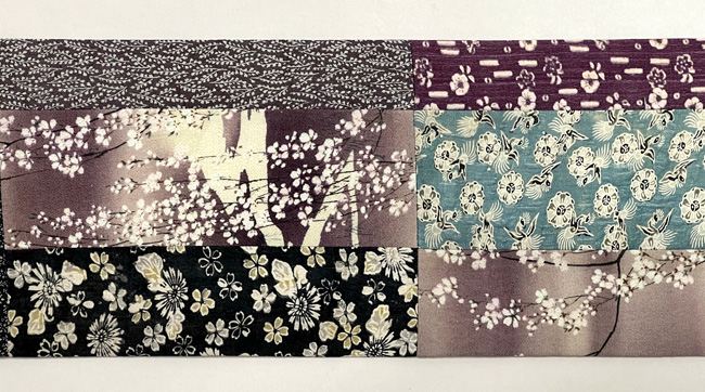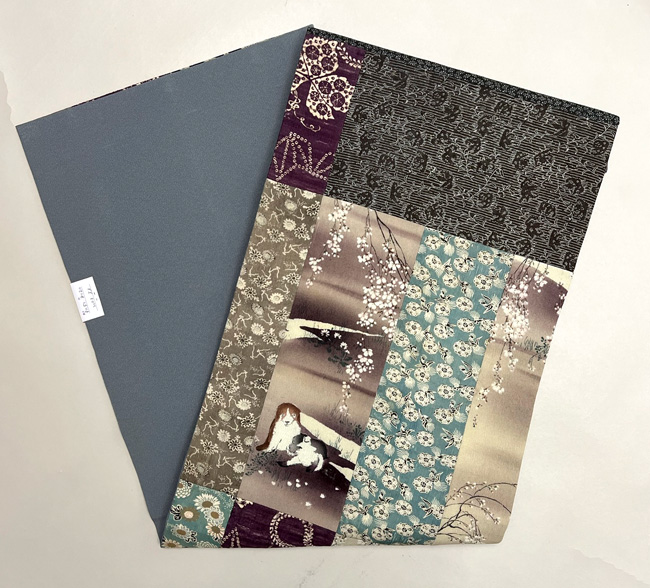江戸縮緬の感触に合わせて、周りも江戸小紋や紫紺染めなど、江戸裂にこだわってみました。