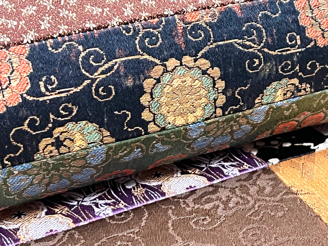 色々な織り、色々な色をお楽しみいただける、眺めていても嬉しい帯になりました。
