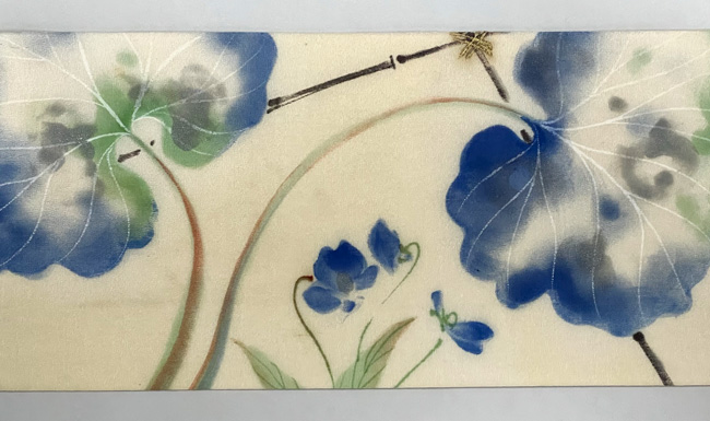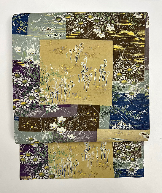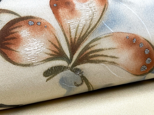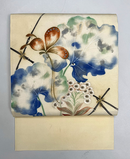 こうして、明治期の渋い帯地に合わせると、額装のような趣になります。