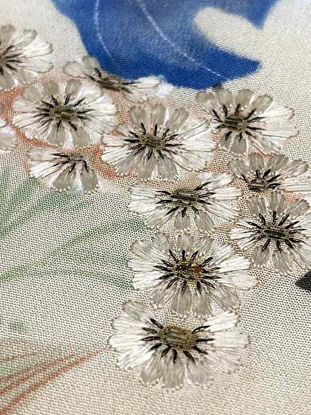 龍村平蔵の糸すすき錦をイメージして紬地に刺繍してみました。