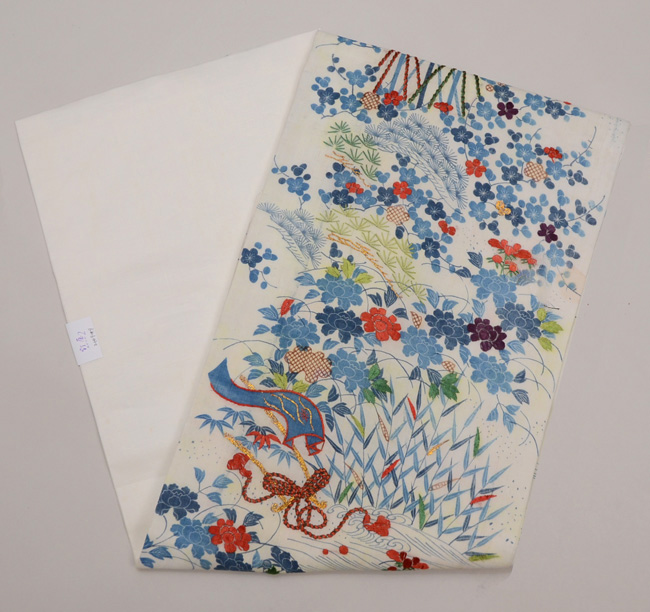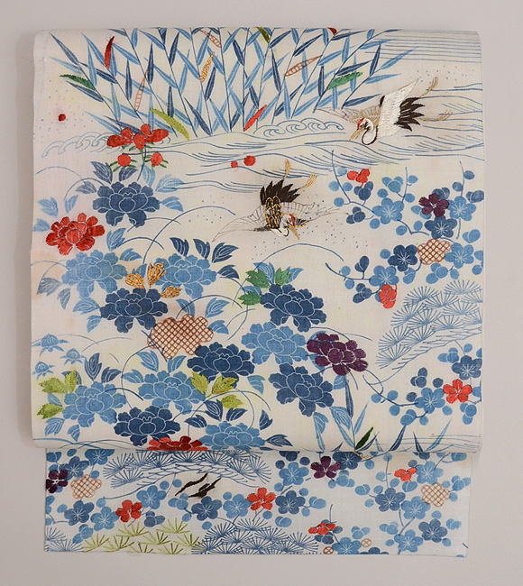 背景には竹の地紋が縦に走って、丸帯らしい重層的な重みを見せています。