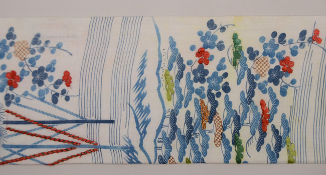 さざなみのような水上を泳ぐオシドリの刺繍を、コラージュしてみました。