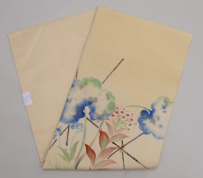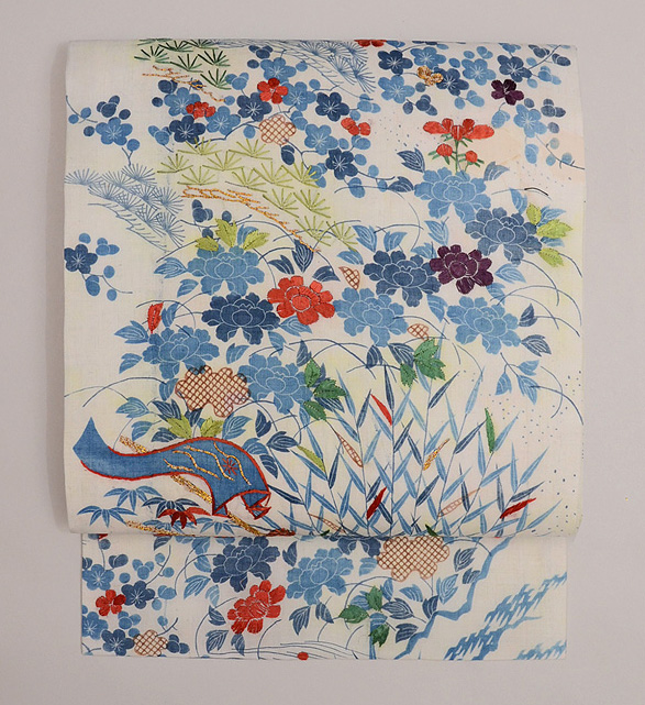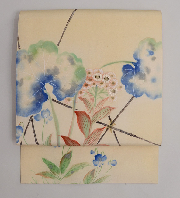 薄いパープルと落ち着いた青とが、抑制の効いた夏帯となっています。