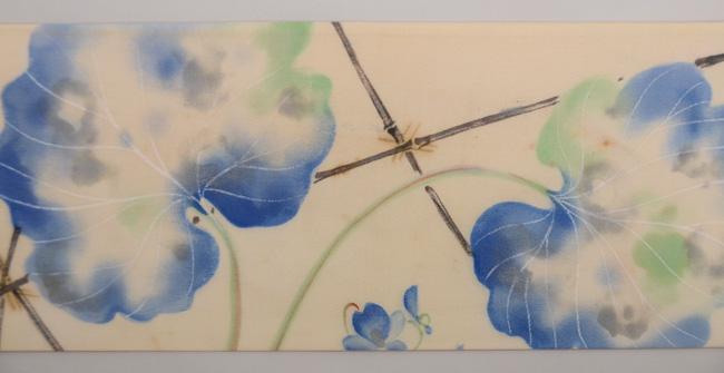 お太鼓には、葦の姿が、前柄には沢瀉が刺されています。