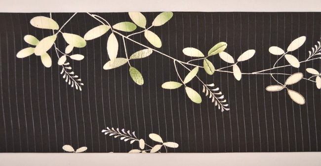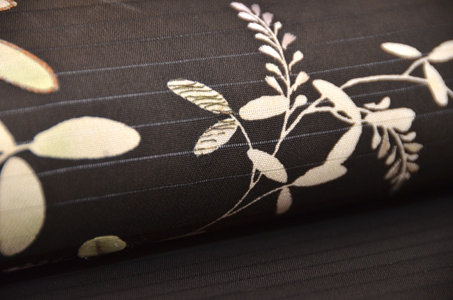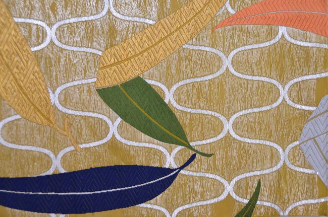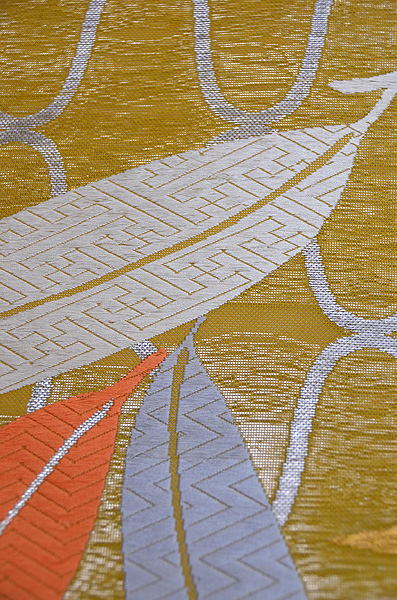 捩り織りの緯糸に刺繍糸を絡ませて、竹屋町のように風雅な趣をかもしだしています。