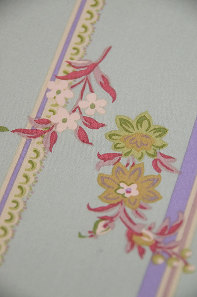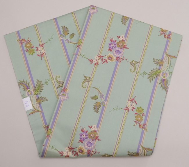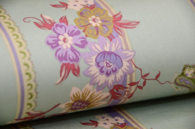 少しアールデコ調のバラが、更紗という素材を得て、色鮮やかな中にも調和のとれた風情で、咲き誇っています。