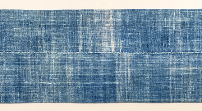 白地に明るいブルーの縞が斜めに入って、絣足がきれいに流れています。