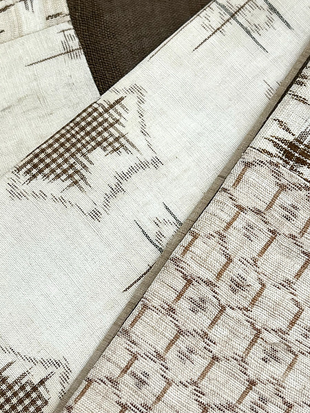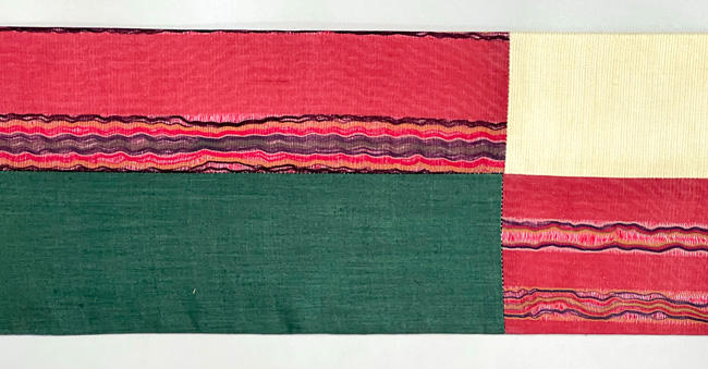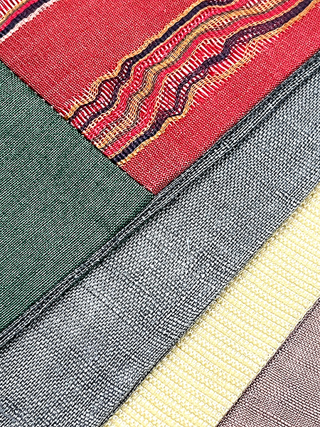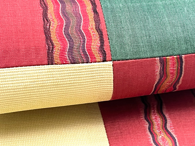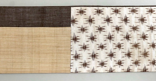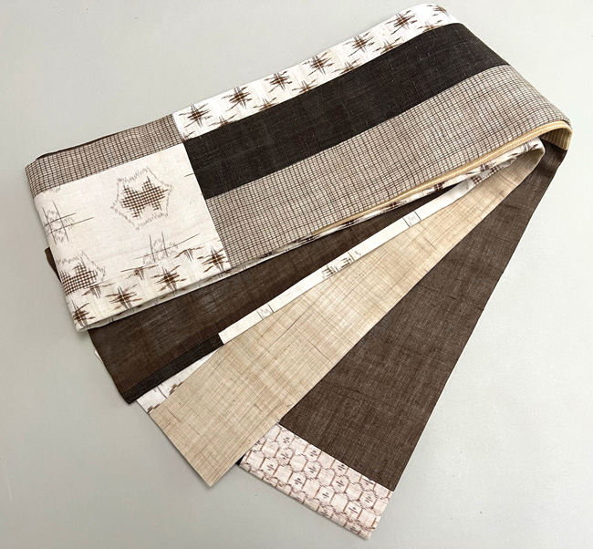 天然素材である麻は、各生産地によってさまざまな個性を持っていますが、それらをコラボして美しく継ぎ合わせてみましたので、色や絣の妙をお楽しみ下さい。