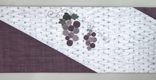 元は、中形染め付け下げの反物でしたが、かわいい半幅帯になりました。