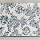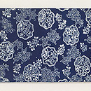 渦巻きのような動きのある文様のところどころに白場があり、海のようにも空のようにも見えますね。