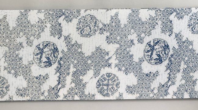 一見、それとは分からぬ程、デザイン化された「ちどり」が並ぶ半幅帯。