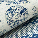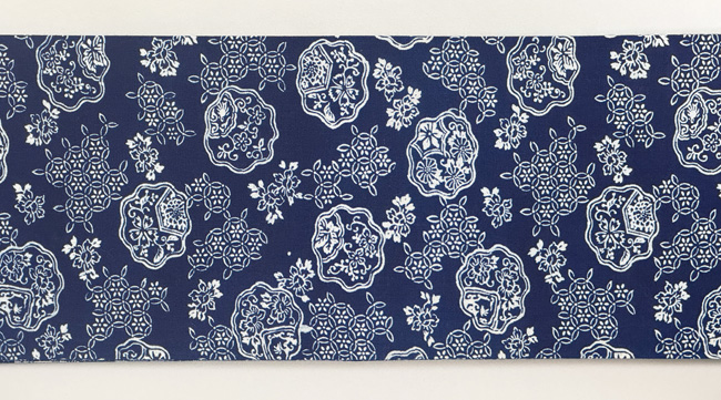 少しクリームがかった白色に藍でちどりと波そして波しぶきが染められています。