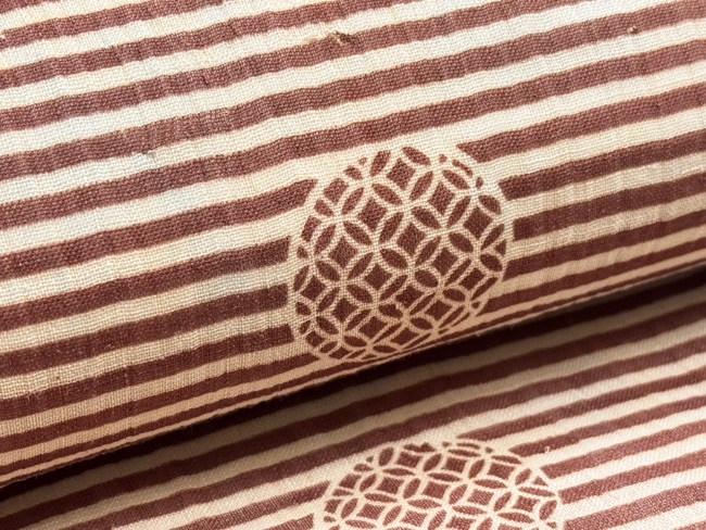 草木染めの糸が2本ずつ入って繊細な縞建てとなっています。