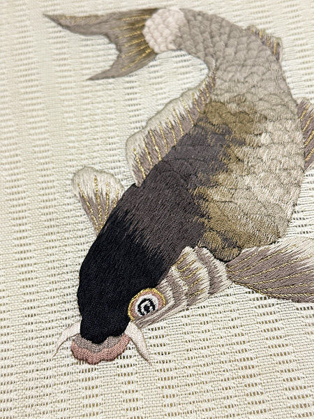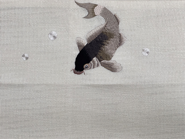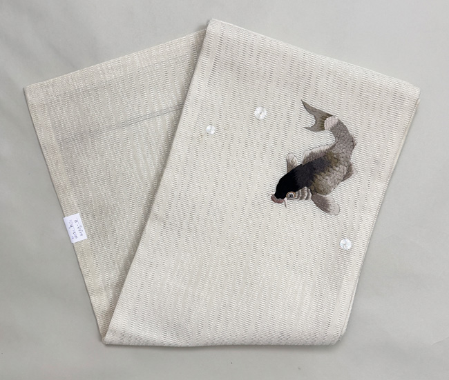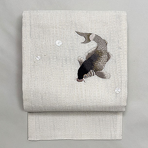 岩場を泳ぐあゆ文様絽帯