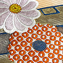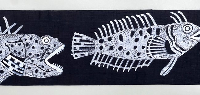木綿の太い糸の上に、ダイナミックなアザミが描かれています。