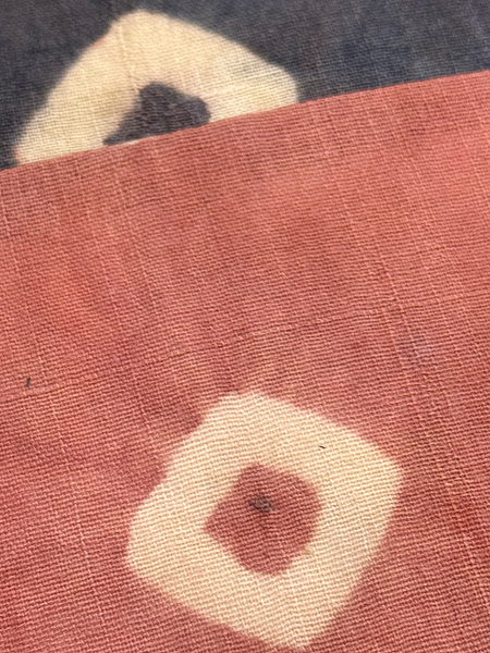 竹でできたすだれの節が作る不思議な文様を、絣柄として織り出したものを伊予絣と言いますが、こちらはその染めバージョンです。