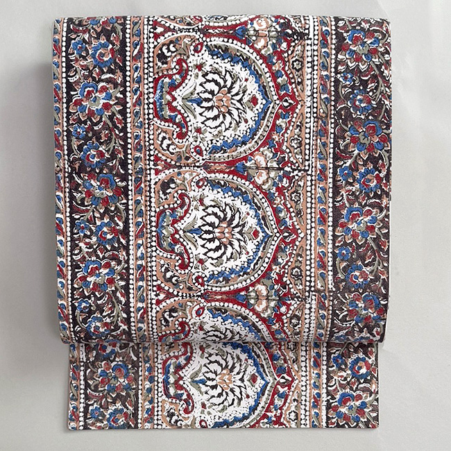 白地インド更紗の名古屋帯