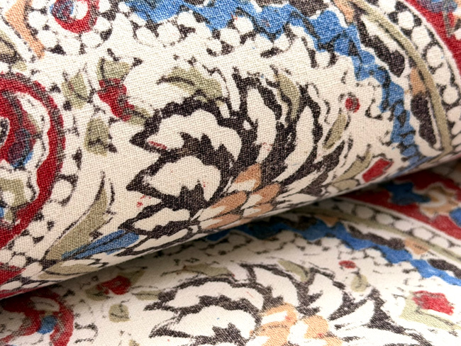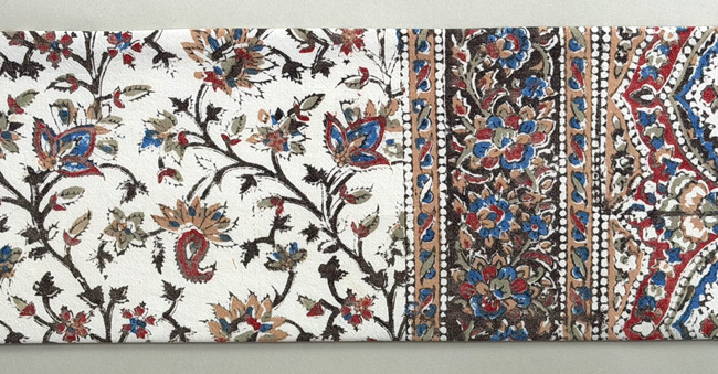 白地の中に5色の色が宝石のように散りばめられて、モザイク画のように美しい更紗です。