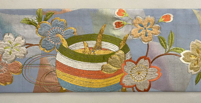 全てが刺繍で表現されていて、軽やかさと重厚さが見事に折り合った名古屋帯です。
