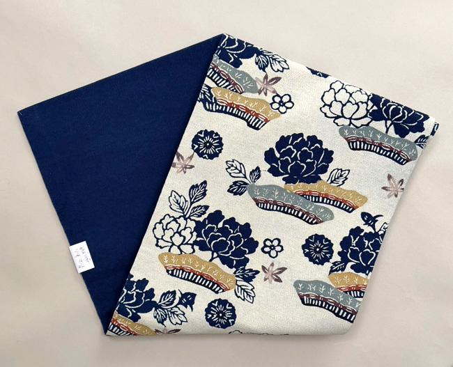 白地に藍の牡丹がほっこりと咲いて、春の到来を告げています。