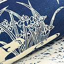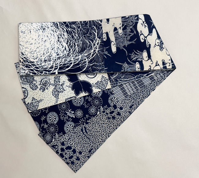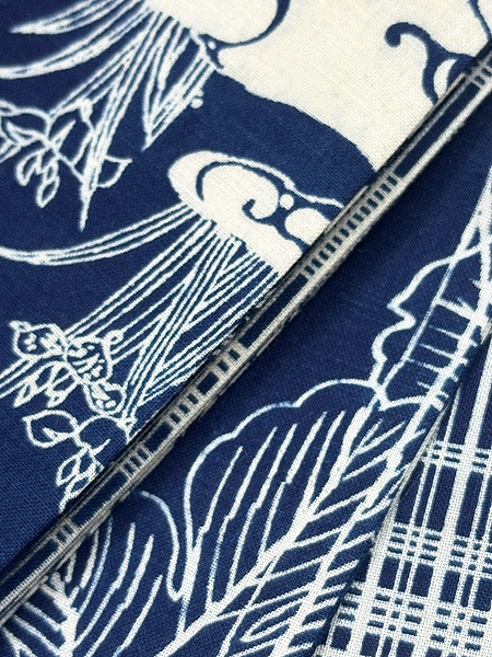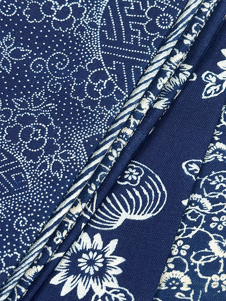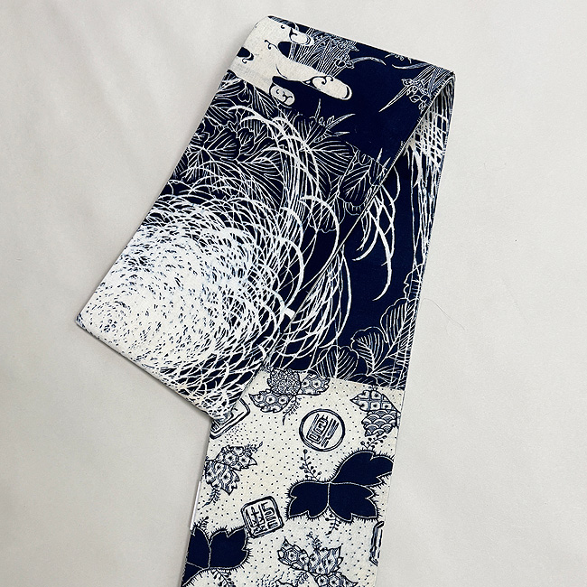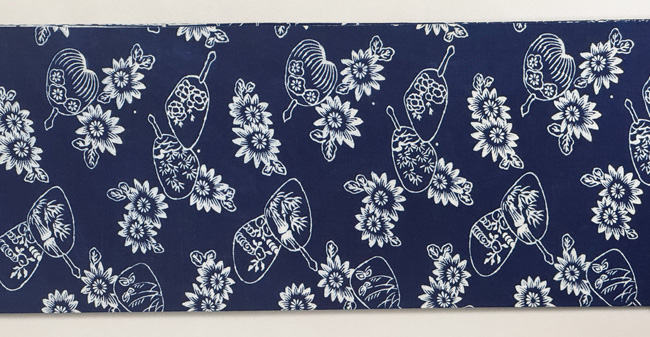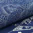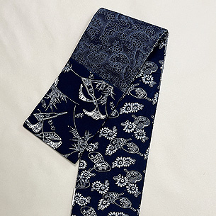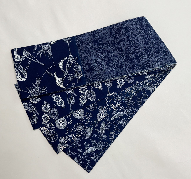 趣深い、古い藍型染めの布からお作りした名古屋帯。