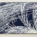 松の枝を傘のようにデフォルメして重ねて行き、小枝を紐のように結んでまとまりを出しています。