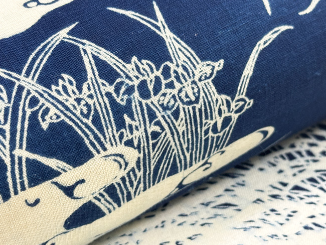 長い年月に藍が素晴らしい色に変わり、華やかな朱色も落ち着いて素敵です。
