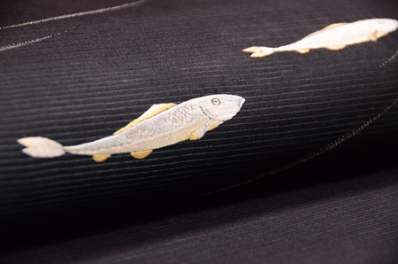 銀地の絽塩瀬に、思い切り大きな真鯉が刺されています。