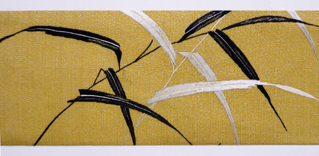 白く染め抜かれた秋草が揺れ、動きを感じさせます。