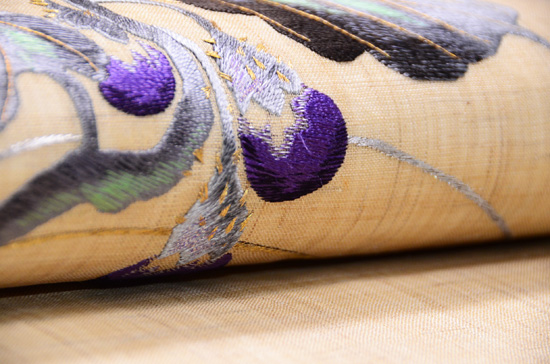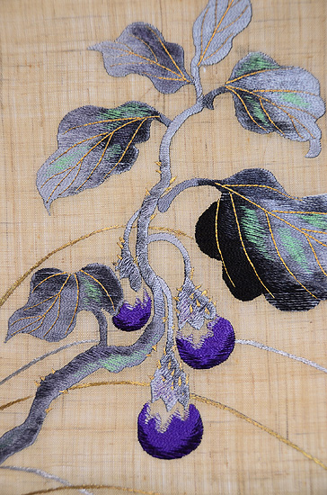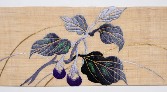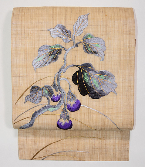 ナスとなるとえこひいきよろしく、花良し、色良し、味良しですから、帯のモチーフとしても、当然異議なしです。