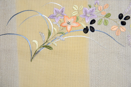 遥か遠く、辻が花ののイメージを表したような格の高い秋草の刺繍です。