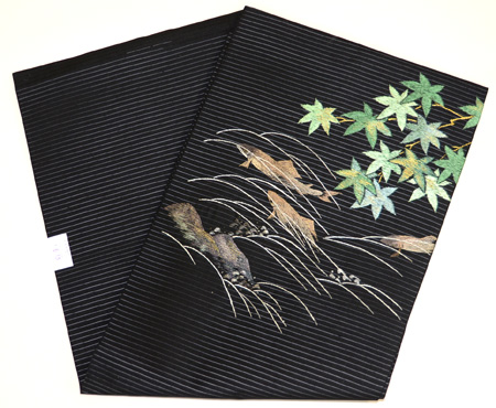元々は丸帯だったものを仕立て直したものなので、昭和の初めごろの作品と思われます。