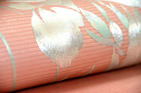 横糸に銀糸を織り込み爽やかな中にも美しい光沢が、初夏の日差しに映える帯です。