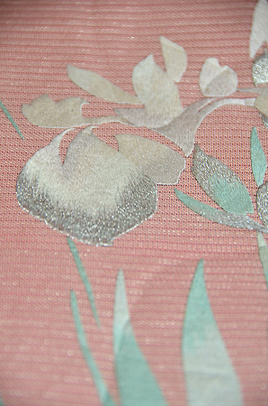 牡丹につつじ、藤の花が織り込まれた、丸帯直しの帯です。
