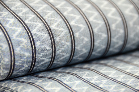経縞に緯絣で山並みが表現されたシンプルなデザインです。