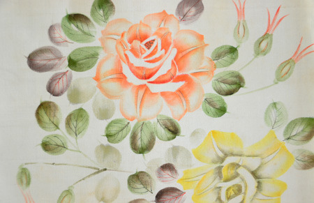 白朱子の上に手描きの薔薇が表情豊かに咲き誇っています。