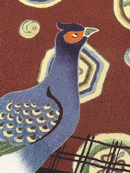 横段に七宝柄、かわいい犬と雉が桃太郎のお供です。