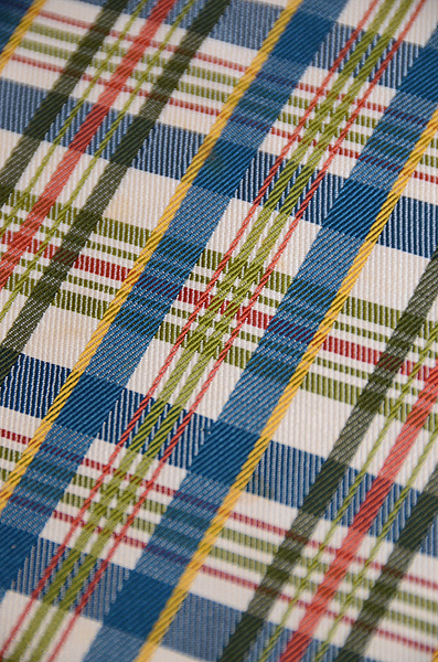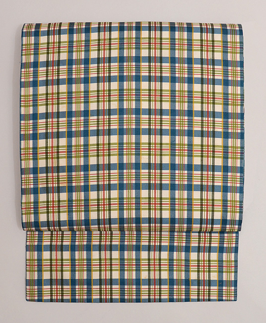 太い格子の中に細い格子が幾重にも絡んで、複雑な格子を織りなした帯です。