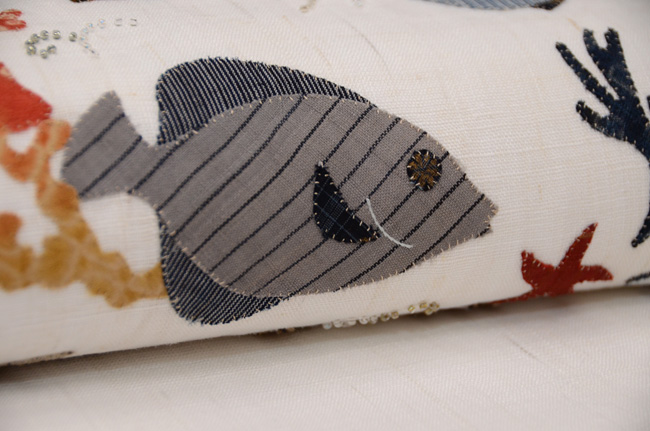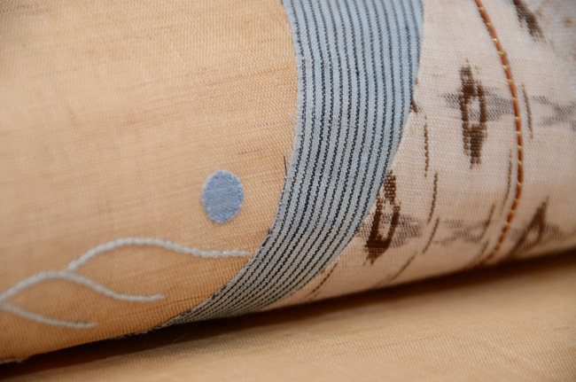 薄手の紬地へのコラージュなので、冬を除く3シーズンお使いいただけます。