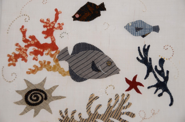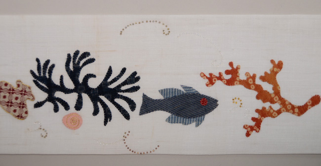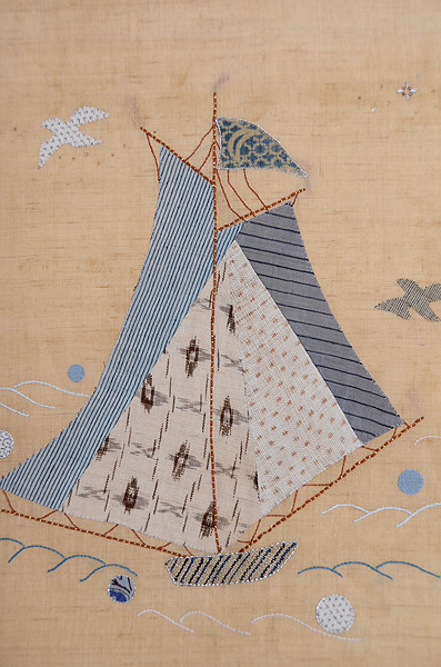 かわいい麻の小裂が並んで、繊細で知的でリズミカル。色と線の魔術師パウルクレーを思い出します。
