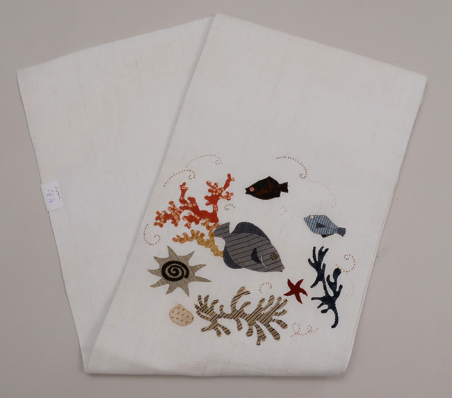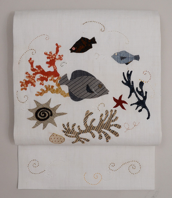 日に照らされた波しぶきにのようにビーズがきらめき、海風を感じるような爽やかな帯です。